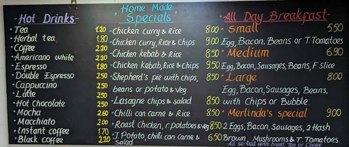 Welcome to Merlinda's Cafe, a charming eatery located at 246 Sherwood Park Ave, Sidcup. This quaint cafe brings an inviting atmosphere enriched by its delightful menu. The standout offerings include a variety of jacket potatoes filled with ingredients like cheese and beans, and an array of hearty specials such as Chicken Curry with rice, Shepherd's Pie, and classic roast dinners featuring meats like beef and lamb.